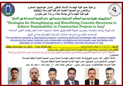 إعــــلان : هندسة بغدا تنظم ورشة حول تقوية المنشآت الخرسانية ودعم التنمية المستدامة في العراق