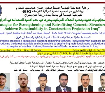 إعــــلان : هندسة بغدا تنظم ورشة حول تقوية المنشآت الخرسانية ودعم التنمية المستدامة في العراق