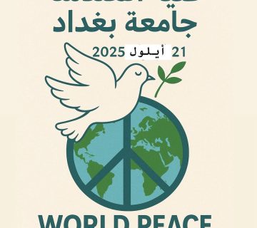 هندسة بغداد تحتفي باليوم العالمي للسلامRasha.hussien21/09/2025شاركت كلية الهندسة في جامعة بغداد، ممثلة بوحدة حقوق الإنسان، في إحياء اليوم العالمي للسلام الذي أقرته الجمعية العامة للأمم ... المزيد
