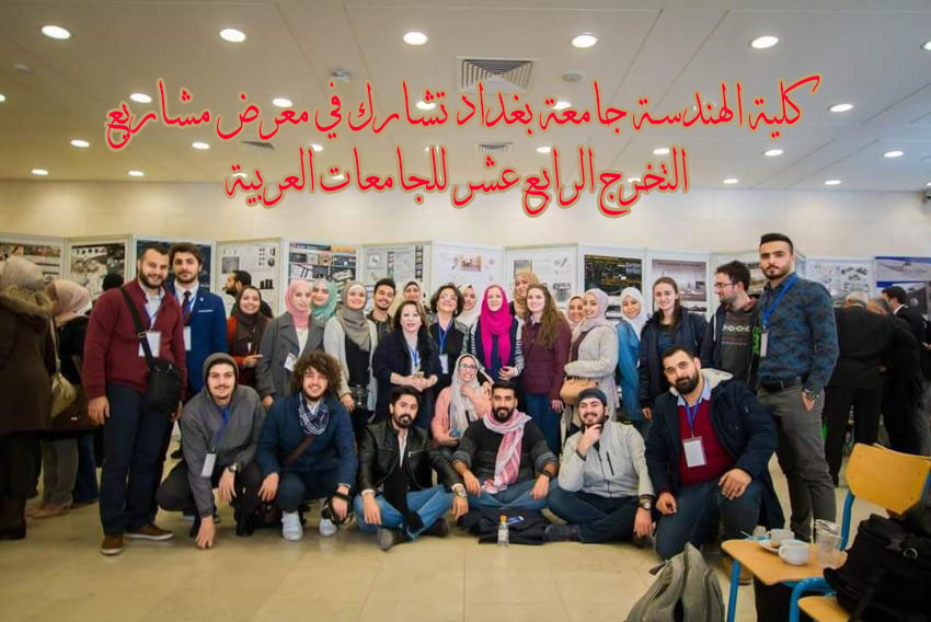 شارك قسم هندسة العمارة بكلية الهندسة / جامعة بغداد بثلاثة مشاريع معمارية إذ مثل القسم الاستاذة الدكتورة غاده موسى رزوقي والمدرسة الدكتورة غاده محمد اسماعيل كمونه بهذا المعرض الذي نظمته لجنة مشاريع التخرج في نقابة المهندسين الأردنيين بالتعاون مع كلية العمارة والتصميم في جامعة العلوم والتكنولوجيا الأردنية،وبالتزامن مع انعقاد اجتماع هيئة المعماريين العرب، وشارك في المعرض اكثر من ٥٠ مشروع من ٢٠ جامعة عربية كان منها من الاردن الجامعة الاردنية وجامعة ال البيت وجامعة البلقاء التطبيقية وجامعة البترا.