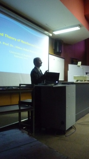 يشرف الدكتور عباس عبد المجيد علاوي على طالبة الدكتوراه عبير عقيل مجيد من قسم الهندسة المدنية اشرافاً مشترك مع الدكتور جاي من كلية الهندسة الجامعة الماليزية حيث بعد إتمام مصادقة جامعة بغداد كلية الهندسة على بحث الطالبة عبير على ان تهيئ الجامعة الماليزية مختراتها لتنفيذ الجانب العملي من البحث وتتكفل بكل المصاريف وتهبئة البرامجيات الحديثة لتمام  البحث وخلال زيارة الدكتور عباس الى الجامعة الماليزية للاطلاع على نتائج البحث وخطوات سير الباحثة تقدمت كلية الهندسة الجامعة الماليزية بدعوة الى الدكتور عباس لإلقاء محاضرات عن في الكلية الاولى تعريفية لكلية الهندسة ونشاطاتها والمكتب الاستشاري وانجازاته والمحاضرة الثانية كانت علمية عنوانها ” النظرية الموحدة للخرسانة المسلحة ” وتم التطرق خلالها الى التوجه الجديد في نظرية الخرسانة المسلحة والتطبيقات والاشتقاقات والبحوث الجارية حاليا والبحوث المستقبلية وقد نالت المحاضرة إعجاب الحاضرين والمهتمين بهذا المجال لان هذا التخصص خط جديد للبحث الحديث قلة الذين تناولوه في بحوثهم كما القا محاضرة عن التحميل للجسور والطرق مستعرضاً خلالها دراسات  لجسور عراقية (الجسر المعلق وجسر المستنصرية وجسر الرستمية )  وتم الاتفاق على عقد مؤتمر علمي برعاية المكتب الاستشاري لكلية الهندسة في منتصف  اذار على ان تكول الحالات التي تمت دراستها لهذه الجسور احدى محاور المؤتمر وتناولت الدراسة لجسر المعلق فحص قدرة تحمل الفتحة الملاحية للجسر لإسناد حمل مقداره 300 طن وتمت بالفعل إجراء تقوية للجسر وتمكنت الشاحنة من المرور من خلاله بالحمل المذكور ونجحت الدراسة التي قام بها فريق من المكتب الاستشاري لكلية الهندسة وكذلك جسر المستنصرية حيث تم اجراء دراسة لتحميل الجسر اما الدراسة التي كانت فريدة من نوعها فهي إعادة أعمار جسر الرستمية الذي تعرض للدمار نتيجة الظروف التي مر بها البلد وبذلك اثبت المهندسون انهم قادرين على اعمار ما تم تدميرة وان المكتب الاستشاري الهندسي فيه من الكفاءات التي تفخر بهم الكلية