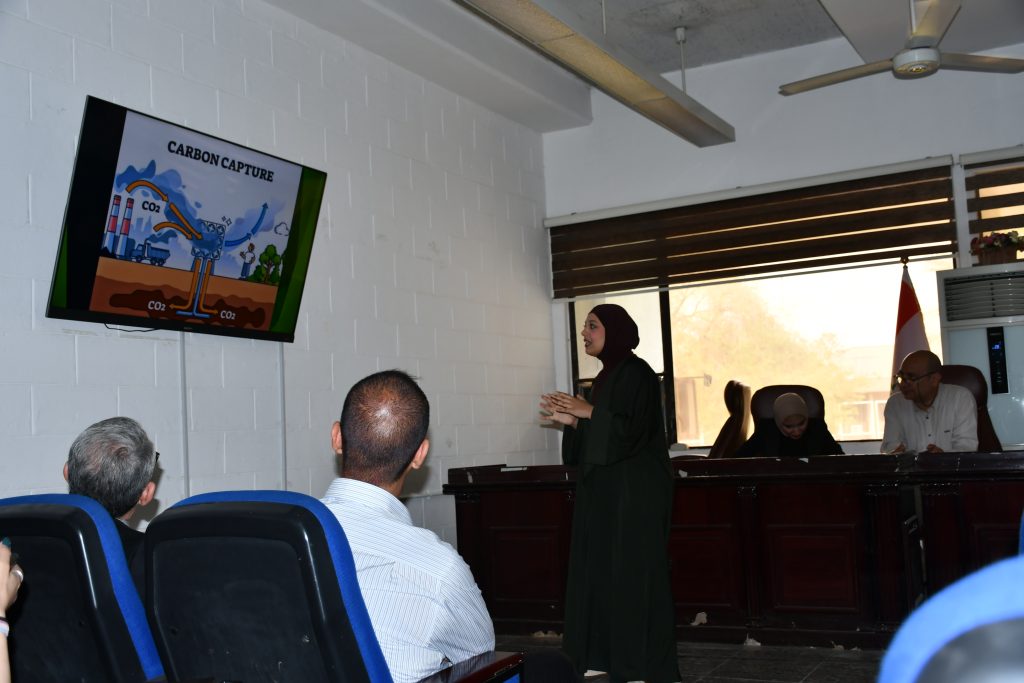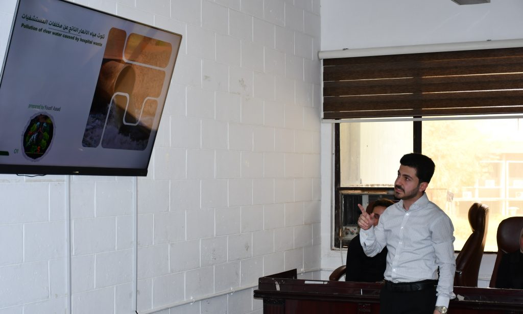 تناول المحور الأول، الذي قدّمه الطالب أحمد عبود من المرحلة الرابعة، مشكلة تركيز الأوزون السطحي وسبل الحد من انبعاثاته، فيما ناقشت الطالبة شكران أحمد من المرحلة الثالثة في المحور الثاني قضية التلوث الكربوني وتقنيات المعالجة المستدامة. أما المحور الثالث، فقد تناول فيه الطالب يوسف أسعد من المرحلة الثالثة معالجة تلوث مياه الأنهار الناتج عن مخلفات المستشفيات.