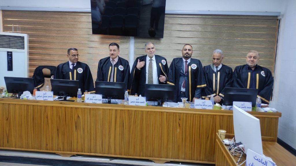 وبعد المناقشة العلمية من قبل السادة اعضاء لجنة المناقشة والاستماع لدفاع الباحث منح الباحث درجة الدكتوراة في هندسة الميكانيك