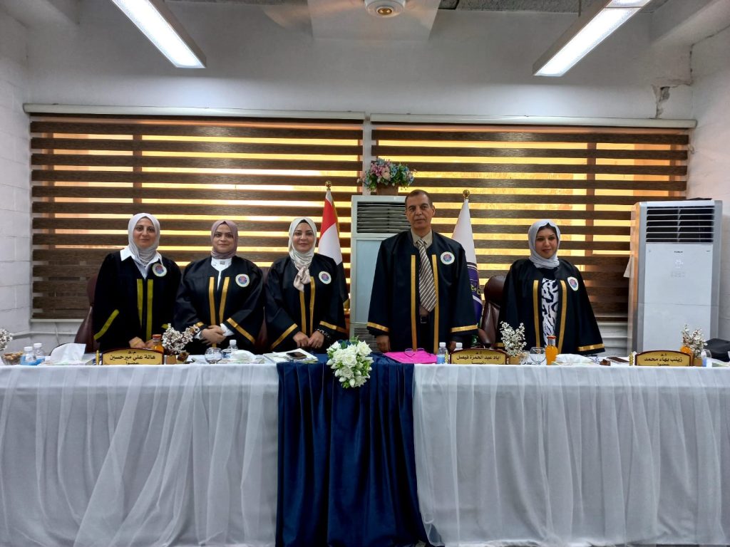 وبعد المناقشة العلمية من قبل السادة اعضاء لجنة المناقشة والاستماع لدفاع الباحث وتقييم الرسالة , منحت الباحثة درجة الماجستير في الهندسة البيئية.