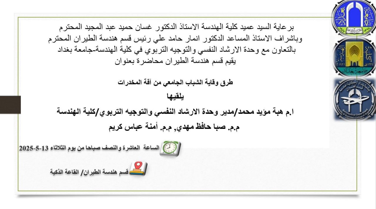 بالتعاون مع وحدة الارشاد النفسي والتوجيه التربوي في كلية الهندسة-جامعة بغداد