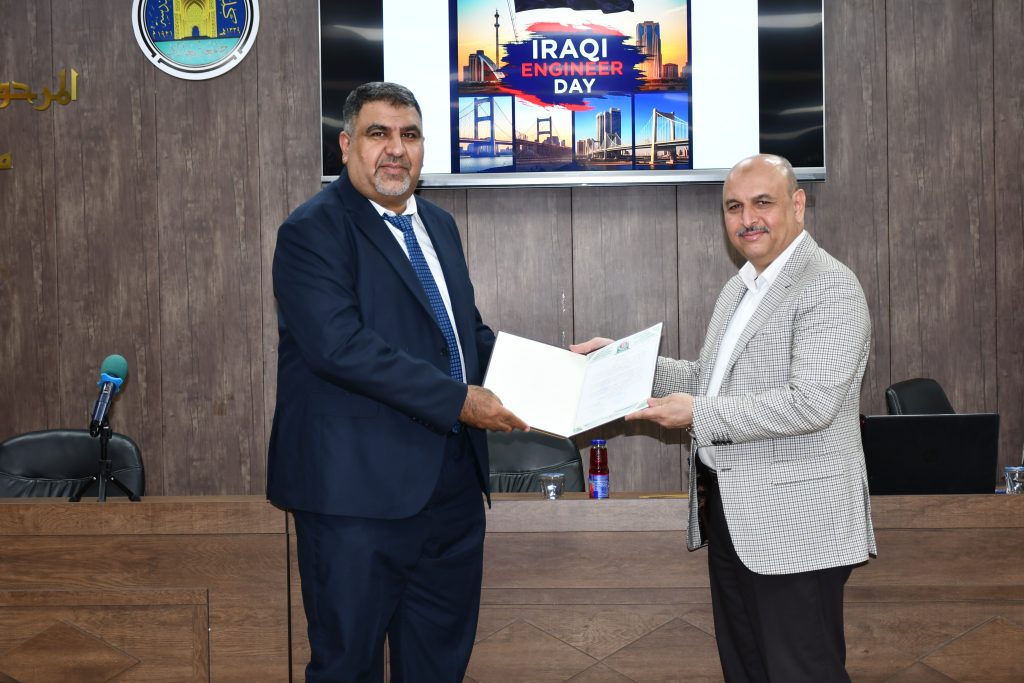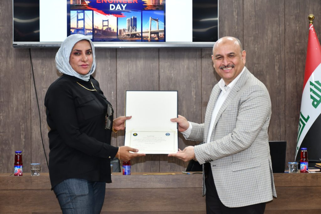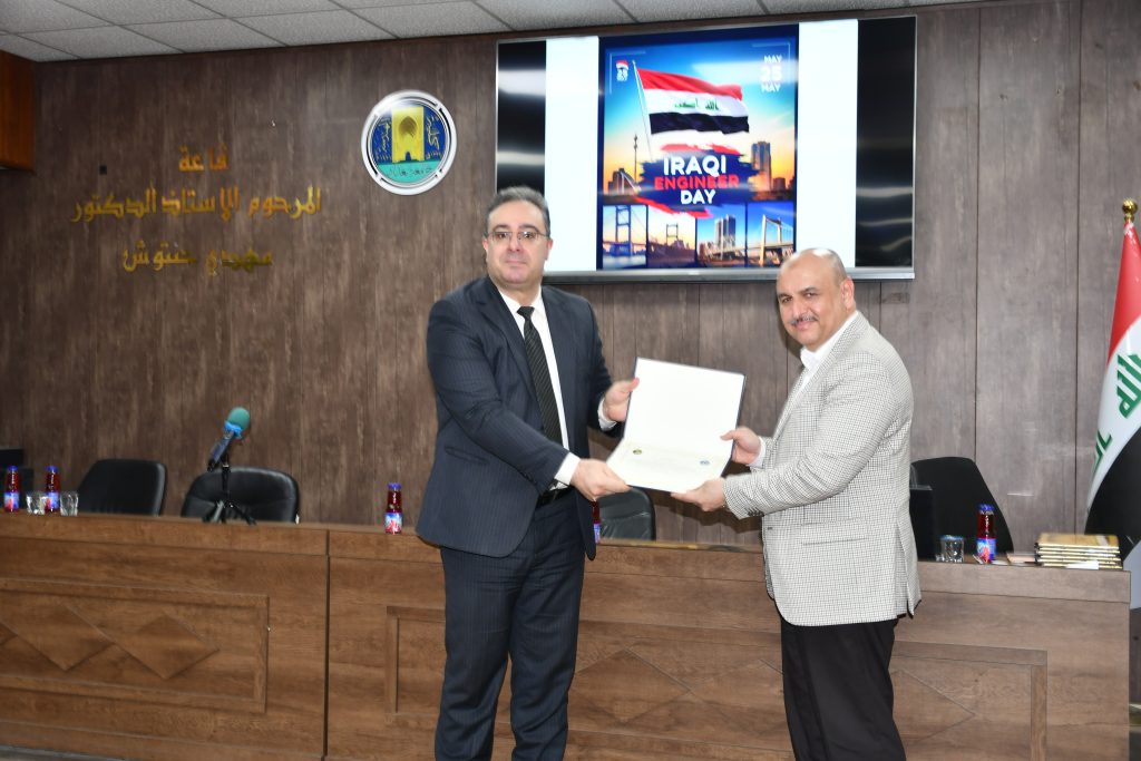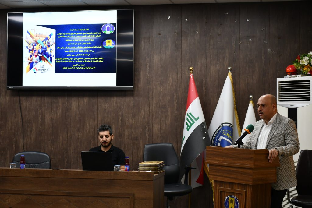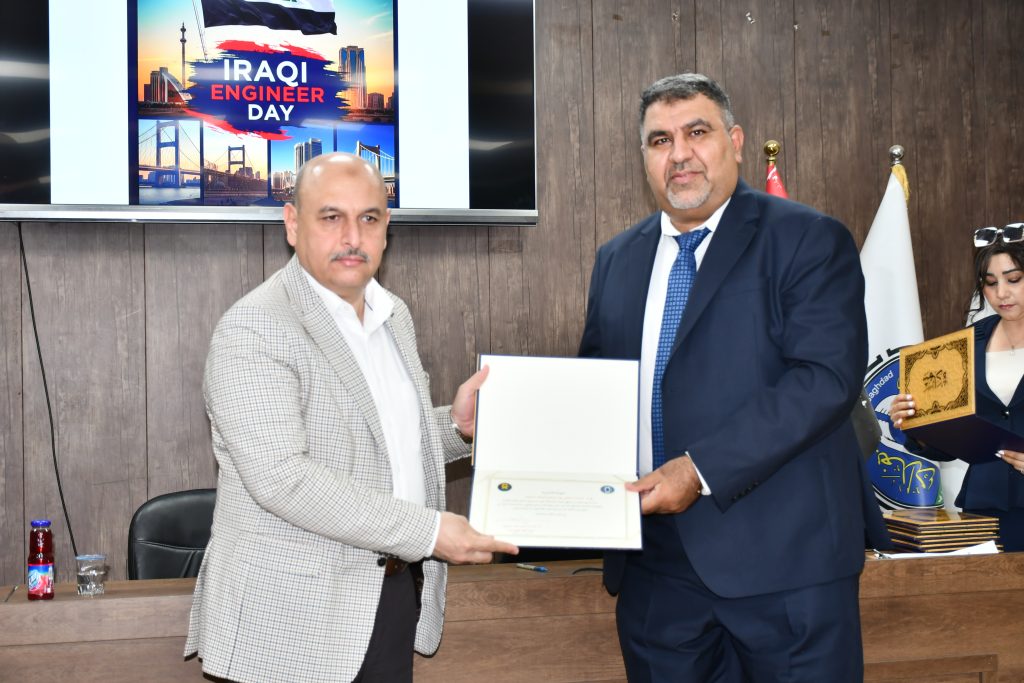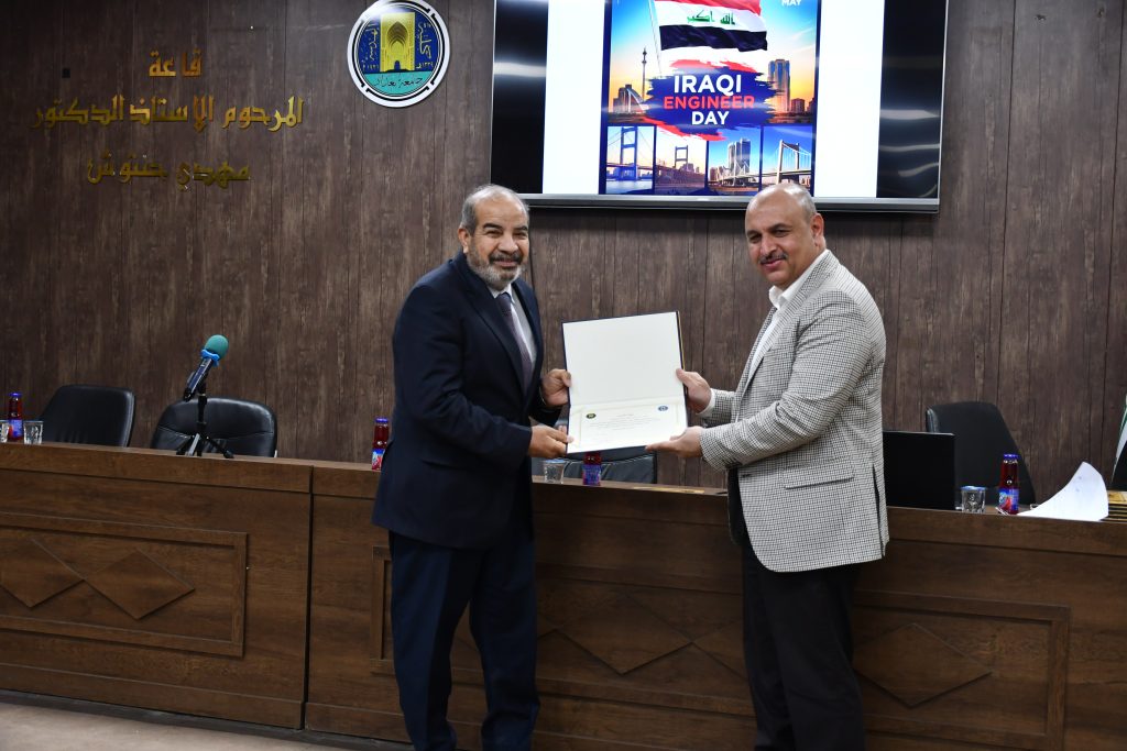 برعاية كريمة من عميد كلية الهندسة في جامعة بغداد الأستاذ الدكتور غسان حميد عبد المجيد، وبإشراف مباشر من معاون العميد للشؤون العلمية الأستاذ الدكتور ضياء جاسم، نظّمت كلية الهندسة احتفالًا مركزيًا بمناسبة يوم المهندس العراقي، وذلك يوم الأحد الموافق 25 أيار 2025 في قاعة الأستاذ الدكتور مهدي حنتوش.