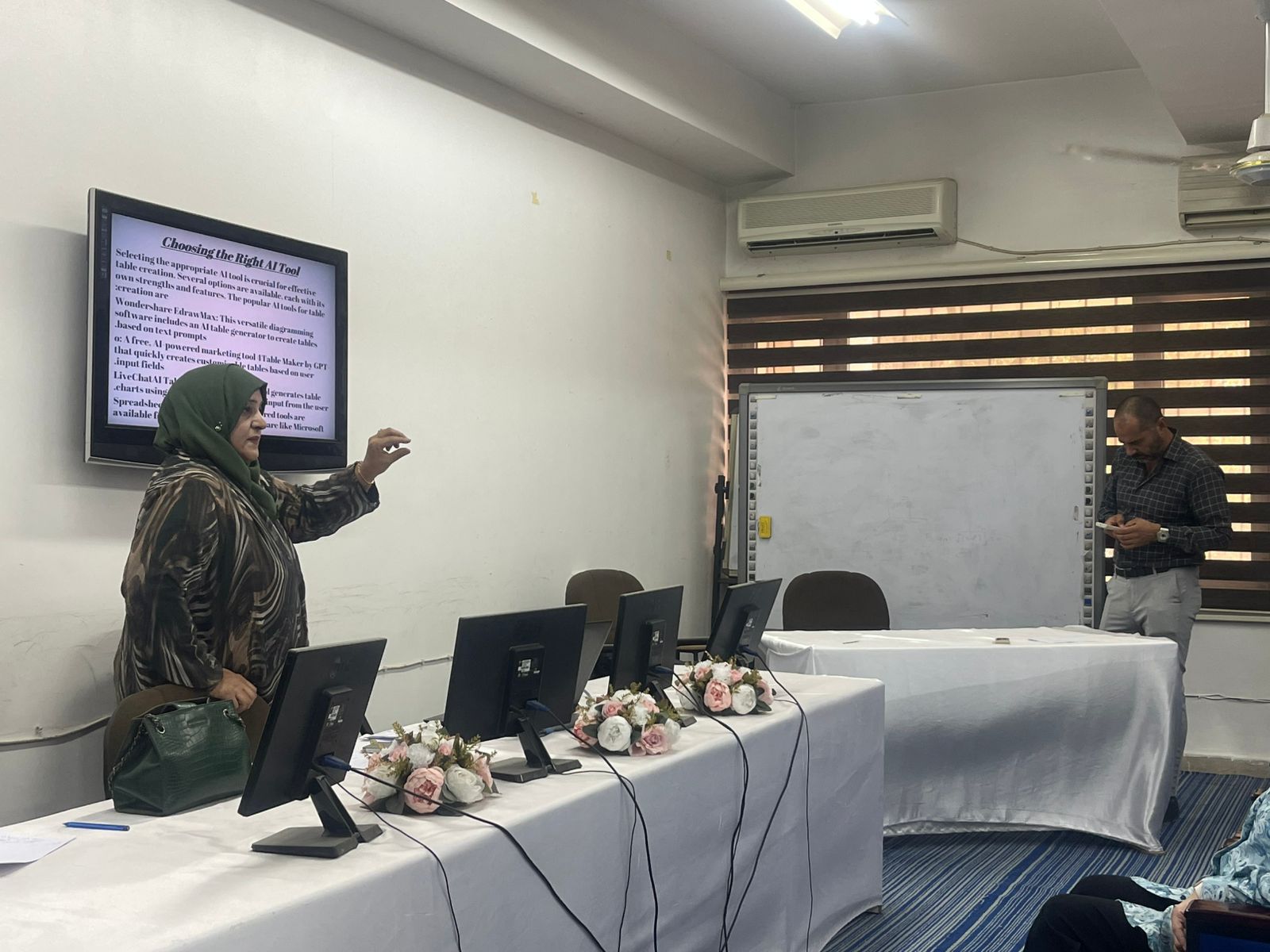 ضمن الفقرة السابعة من ركيزة المشاركة والإصلاح المؤسسي في الخطة الاستراتيجية الوطنية للمرأة الأمن والسلام نظّمت وحدة شؤون المرأة في كلية الهندسة – جامعة بغداد بالتعاون مع قسم هندسة الإلكترونيات والاتصالات ووحدة التعليم المستمر ورشة تدريبية بعنوان توظيف الذكاء الاصطناعي في الإحصاء والجداول القتها م . د أنوار قاسم عبد المحمد وذلك يوم السبت الموافق 25 أيار 2025 في تمام الساعة العاشرة صباحاً