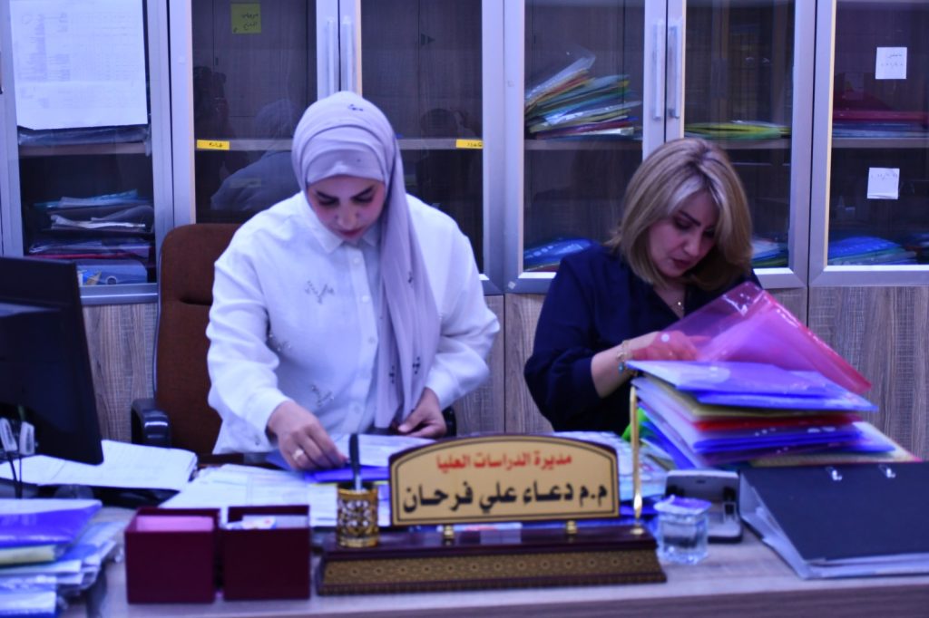 وتؤكد مديرة شعبة الدراسات العليا، م.م دعاء علي فرحان، على ضرورة قيام جميع المتقدمين بتسليم الملف الورقي الكامل إلى شعبة الدراسات العليا في الكلية، لغرض تدقيق البيانات المدخلة إلكترونيًا ومعالجة الأخطاء – إن وُجدت – قبل انتهاء فترة التقديم عبر المنظومة الإلكترونية