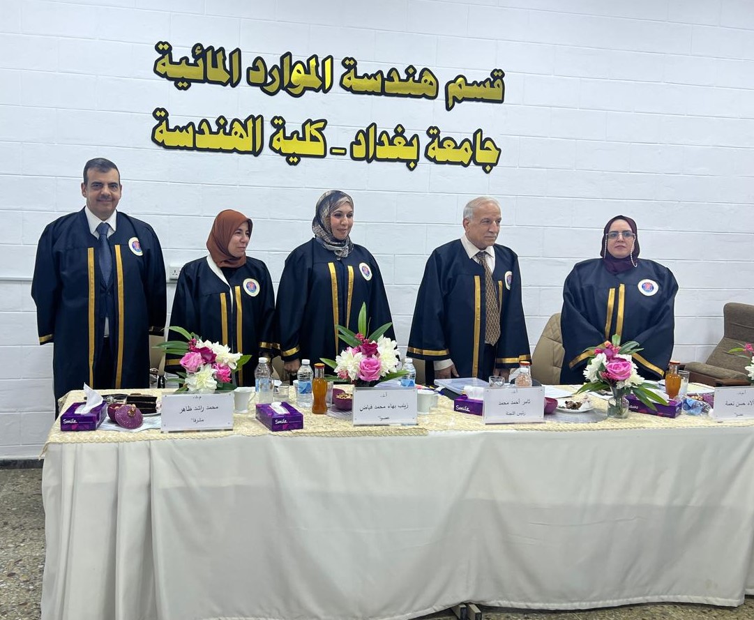 بعد المناقشة العلمية واستماع اللجنة إلى دفاع الباحثة، منحت الباحثة درجة الماجستير في هندسة الموارد المائية،