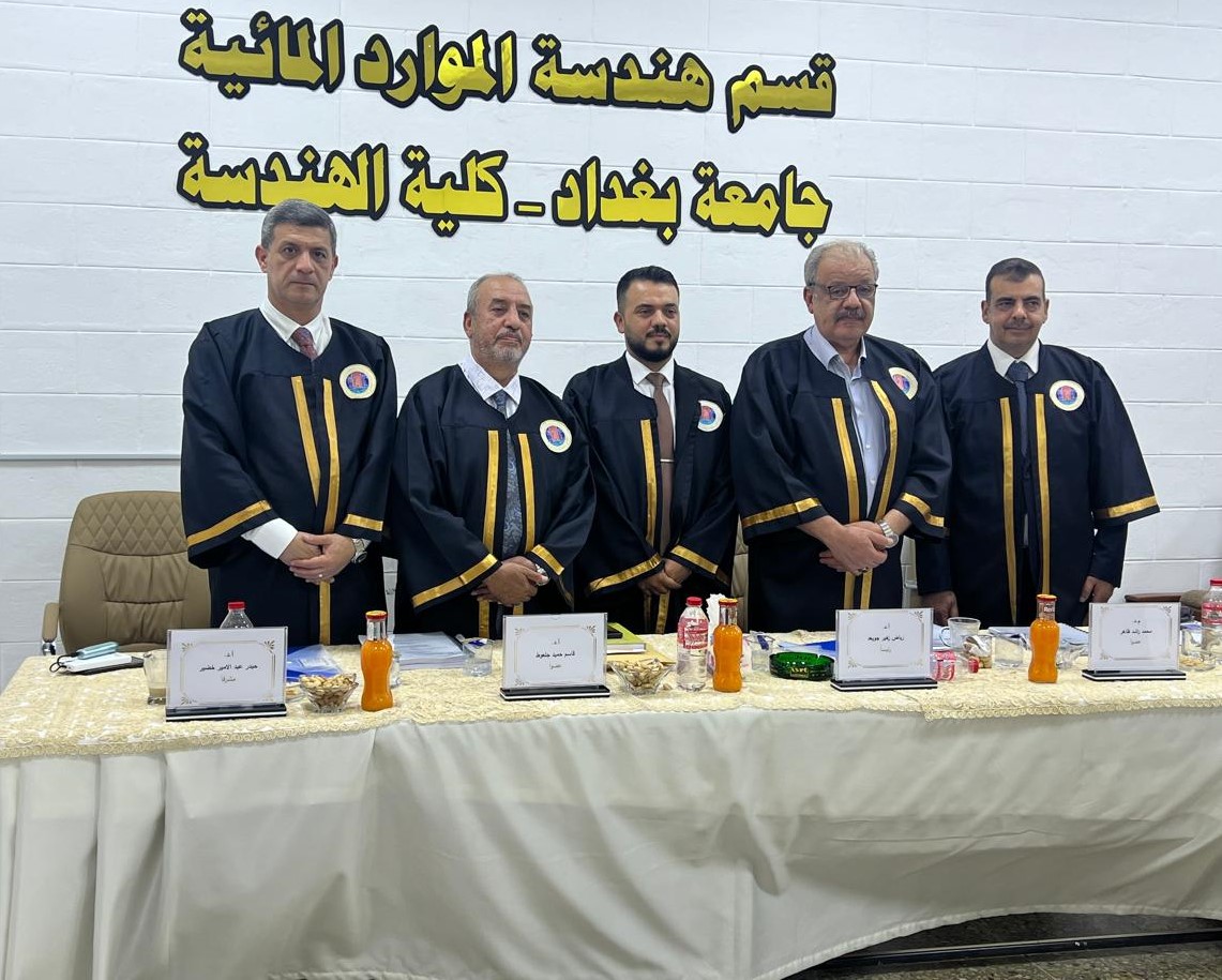وبعد المناقشة العلمية من قبل السادة اعضاء لجنة المناقشة والاستماع لدفاع الباحث وتقييم الرسالة منح الباحث درجة الماجستير في هندسة الموارد المائية