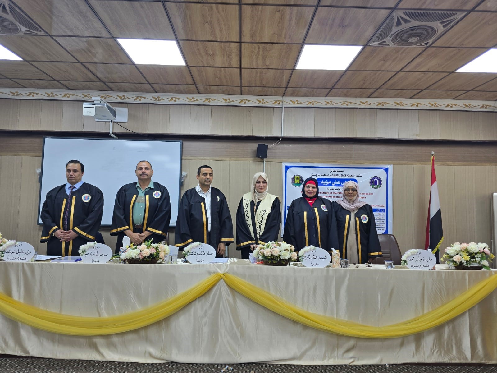 شهدت كلية الهندسة جامعة بغداد المناقشة العلنية لطالبـــه الماجستيرضحى علي مؤيد من قسم هندسة الطاقة عن رسالتها الموسومة بانتاج الهيدروجين الأخضر عن طريق استخدام أنابيب الكربون النانوية المحضرة من مخلفات الغذاء وذلك يوم الاثنين الموافق 25 آيار 5202 وعلى قاعة د مؤيد بأشراف أ.م. د. مؤيد خليل إبراهيم و م.د. حليمة جابر محمد
