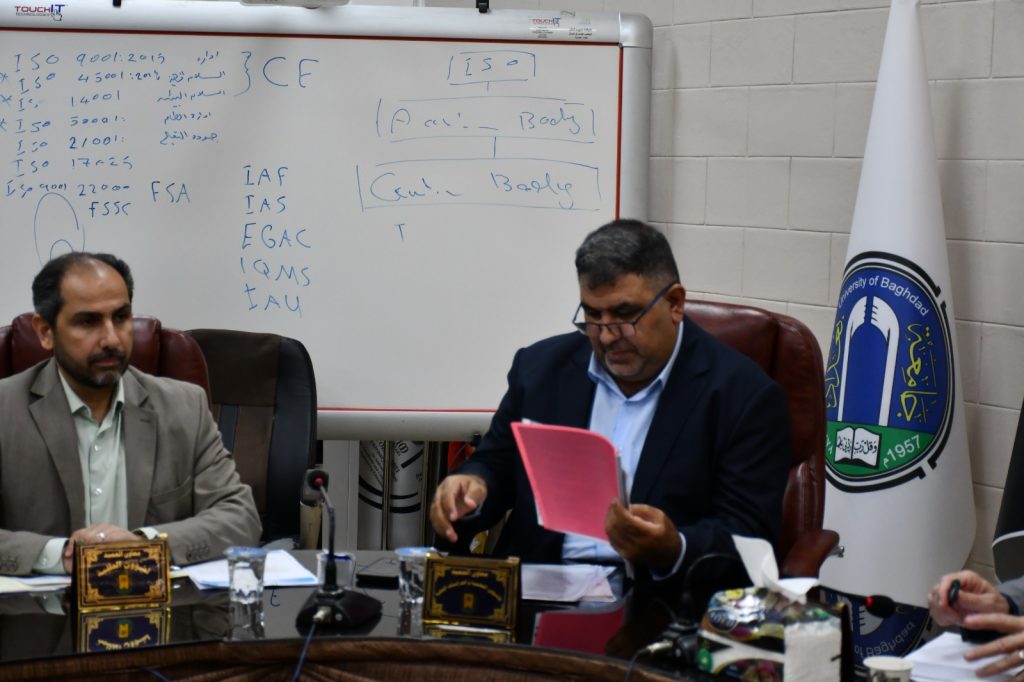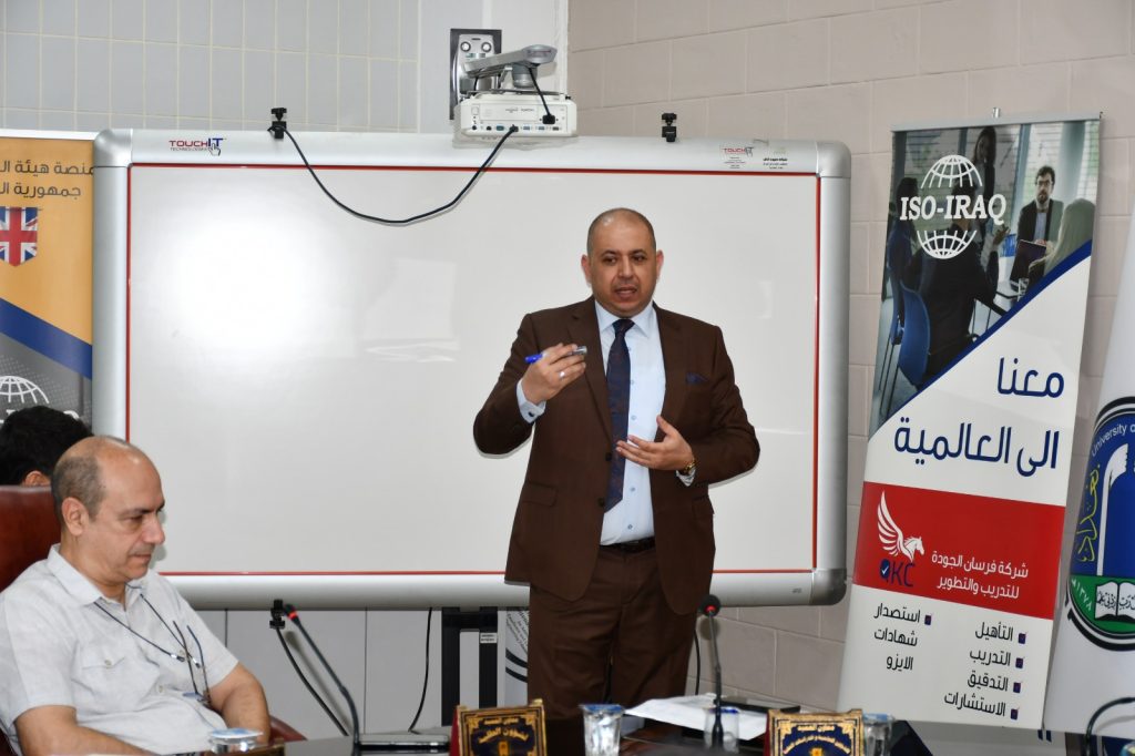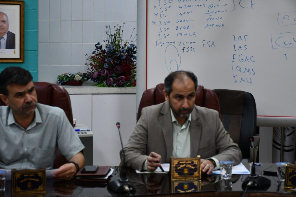 وشهدت الجلسة استضافة وفد من شركة فرسان الجودة للتدريب وتطوير الموارد البشرية، برئاسة السيد محمد العلاف المدير المفوض للشركة، حيث قدّم الوفد ندوة تعريفية تناولت نظم الجودة ومعايير نظام الآيزو الدولي (ISO 9001:2015)، واستعرض خلالها نشاطات الشركة في تطبيق هذه المعايير بمختلف القطاعات، ومنها قطاع التعليم العالي.