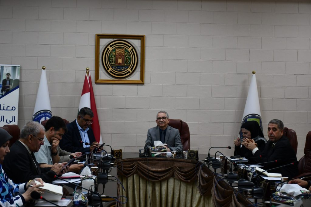 عقد مجلس كلية الهندسة في جامعة بغداد، صباح يوم الخميس الموافق 3 حزيران 2025، جلسته الثامنة عشرة برئاسة الأستاذ الدكتور غسان حميد عبد المجيد، عميد الكلية، وبحضور السادة المعاونين ورؤساء الأقسام العلمية.