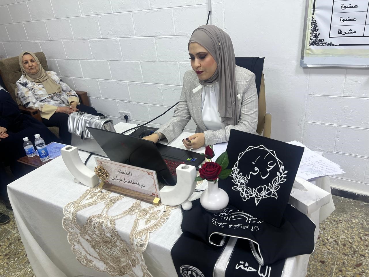 وبعد مناقشة مستفيضة من قبل لجنة المناقشة، والاستماع إلى دفاع الطالبة عن محتوى رسالتها، تقرر منحها درجة الماجستير في هندسة الموارد المائية .