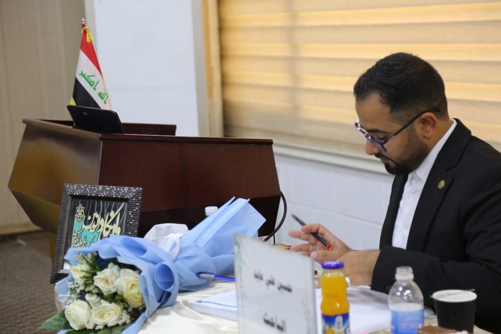 ترأس الأستاذ الدكتور غسان حميد عبد المجيد، عميد كلية الهندسة في جامعة بغداد، لجنة المناقشة العلنية لرسالة الماجستير المقدمة من الطالب حسين علي عايد في قسم هندسة النفط، وذلك يوم الأربعاء الموافق 23 حزيران 2025، في قاعة المناقشات التابعة للقسم.