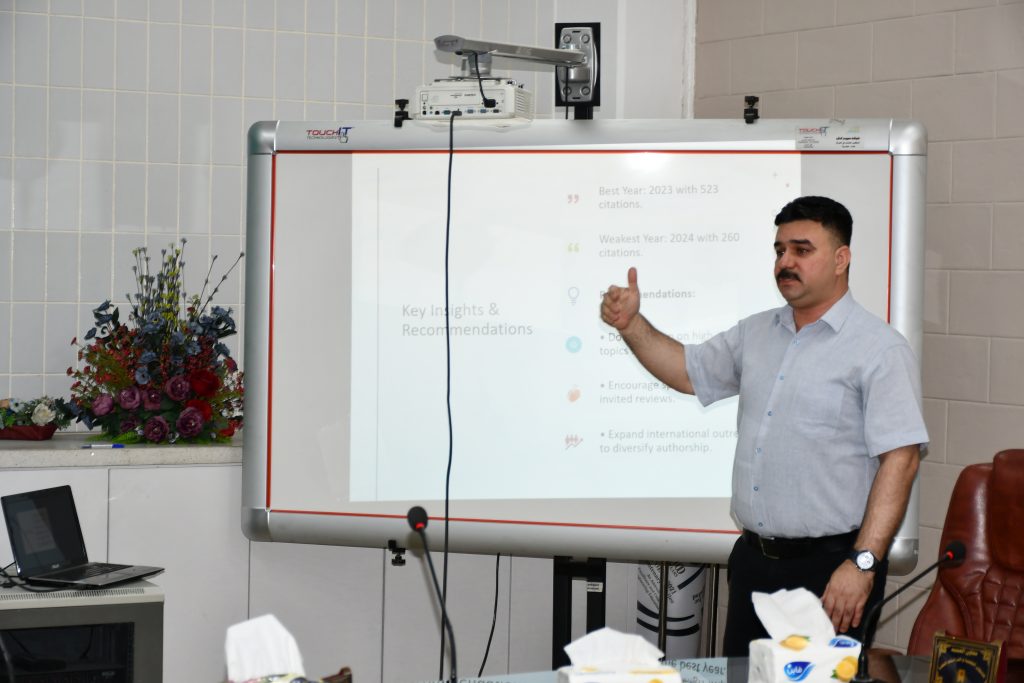وجرى خلال اللقاء التعريف بالمجلة وإصداراتها العلمية من قبل رئيس التحرير وكادر المحررين العلميين، بالإضافة إلى مناقشة أداء المجلة وتقديم الملاحظات حول مهام الكادر في مجالات النشر والاقتباس والتخصصات العلمية التي تغطيها المجلة.