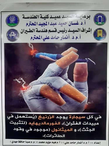 برعاية السيد عميد كلية الهندسة الأستاذ الدكتور غسان حميد عبد المجيد المحترم، وبإشراف السيد معاون العميد للشؤون العلمية والدراسات العليا الأستاذ الدكتور زياد طارق عبد علي والسيد رئيس قسم هندسة الطيران الأستاذ المساعد الدكتور أنمار حامد علي المحترم، نظم قسم هندسة الطيران في كلية الهندسة – جامعة بغداد، بالتعاون مع وحدة الإرشاد النفسي والتوجيه التربوي الجامعي ووحدة التعليم المستمر، ورشة عمل توعوية بعنوان التدخين وآثاره النفسية والصحية على الشباب الجامعي ، وذلك على القاعة الذكية في القسم.
