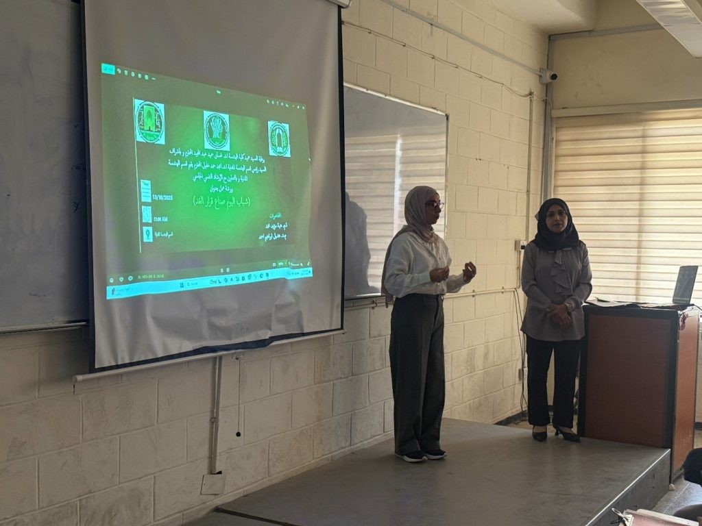 نظّم قسم الهندسة المدنية بالتعاون مع وحدة الإرشاد النفسي والتوجيه التربوي في كلية الهندسة بجامعة بغداد ورشة عمل لطلبة المرحلة الثانية بعنوان “شباب اليوم صناع قرار الغد”، وذلك يوم الاثنين الموافق 13 اكتوبر 2025 ألقاها كل من أ.م. هبة مؤيد محمد، مديرة وحدة الإرشاد النفسي  وعضو الارتباط، وم.د. هديل إبراهيم أحمد، التدريسية في القسم