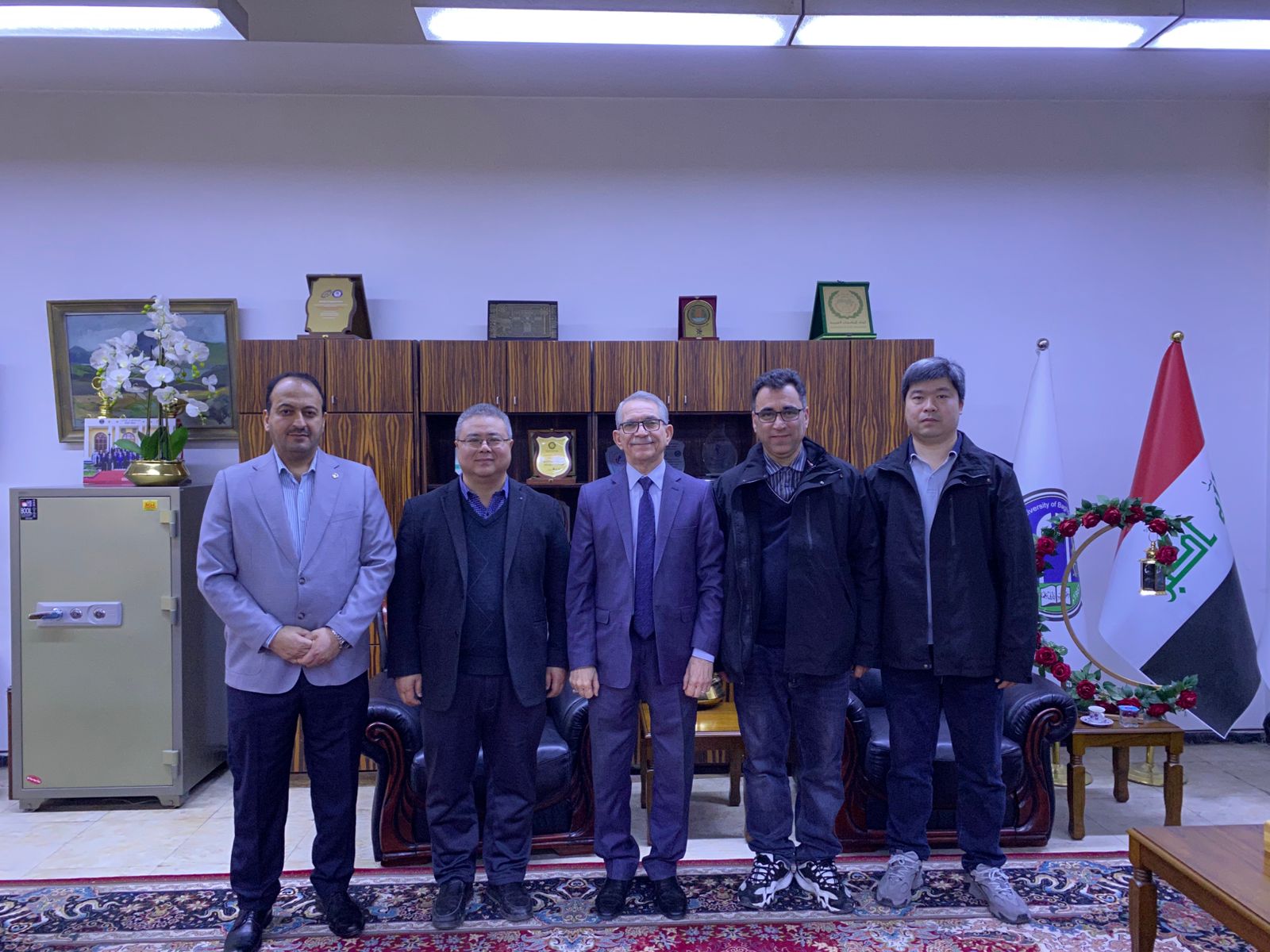 على هامش ندوة تخزين الطاقة والشبكات الذكية التي أقامها قسم هندسة الكهرباء في كلية الهندسة بجامعة بغداد، ودّع السيد عميد الكلية الأستاذ الدكتور غسان حميد عبد المجيد، برفقة رئيس قسم هندسة الكهرباء الأستاذ الدكتور فراس محمد طعيمة، وفد جامعة ووهان الصينية، في خطوة تعكس حرص الجانبين على توطين العلاقات الأكاديمية والعلمية وتعزيز التعاون المشترك. وضمّ الوفد البروفيسور دونغ، والأستاذ المشارك غمجين عزت رشيد، والأستاذ المشارك تشاو جيه، حيث جرى التأكيد على أهمية توسيع الشراكات البحثية وتبادل الخبرات الأكاديمية ودعم البرامج العلمية المشتركة، بما يسهم في تطوير البحث العلمي ومواكبة التحولات العالمية في قطاع الطاقة،و مسارات التنمية المستدامة.