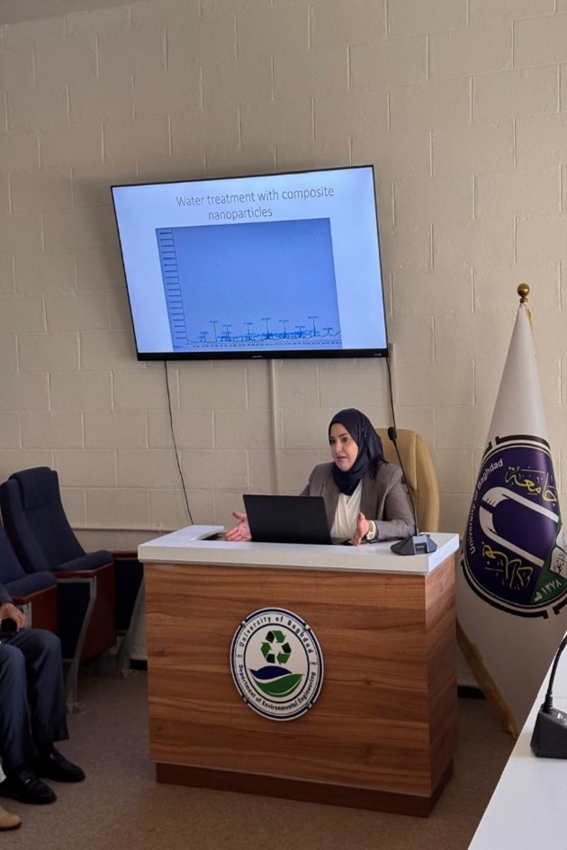 برعاية السيد عميد كلية الهندسة في جامعة بغداد، الأستاذ الدكتور غسان حميد عبد المجيد، وبإشراف رئيس قسم الهندسة البيئية، الأستاذ الدكتور إياد عبد الحمزة فيصل، نظم قسم الهندسة البيئية بالتعاون مع وحدة التعليم المستمر، ورشة عمل بعنوان “استخدامات تقنية النانو”، وذلك يوم الاثنين الموافق 9 آذار 2026 على قاعة المناقشات في القسم. وقد ألقتها التدريسية م.د. هديل محمد حسين، بحضور رئيس القسم وعدد من التدريسيين وطلبة القسم.
