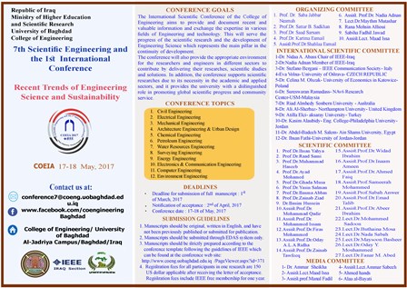 - 3- تنسيق البحوث المقدمة يكون حسب النموذج الخاص بالمؤتمر والخاضع لتوجيهات IEEE والتي يمكن الاطلاع عليها في موقع المؤتمر على الرابط التالي:http:/www.coeng.uobaghdad.edu.iq/PageViewer.aspx?id=371