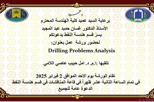 اعـــــلان : هندسة بغداد تدعوكم لحضور ورشة عمل بعنوان Drilling Problems Analysis