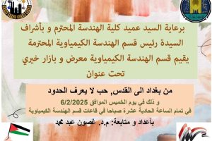 إعلان: من بغداد إلى القدس – هندسة بغداد تدعوكم للمشاركة في البازار الخيري