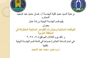اعـــــــــلان : هندسة بغداد تدعوكم لحضور ورشة عمل حول التوقعات المناخية ومؤشراتها المتطرفة في المنطقة العربية