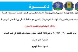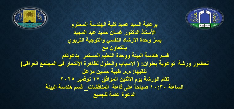 إعــــلان: ورشة توعوية في هندسة بغداد عن اسباب وحلول ظاهرة الانتحار