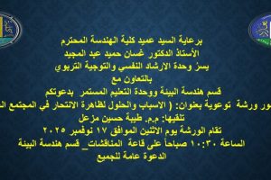 قسم الهندسة البيئية في جامعة بغداد ينظم ورشة عمل حول الابتزاز الإلكتروني وتأثيراته على المجتمع العراقي