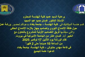 إعــــلان : هندسة بغداد تنظم ورشة حول طاقة الاندماج النووي وتصاميم جهاز البلازما الحلقي