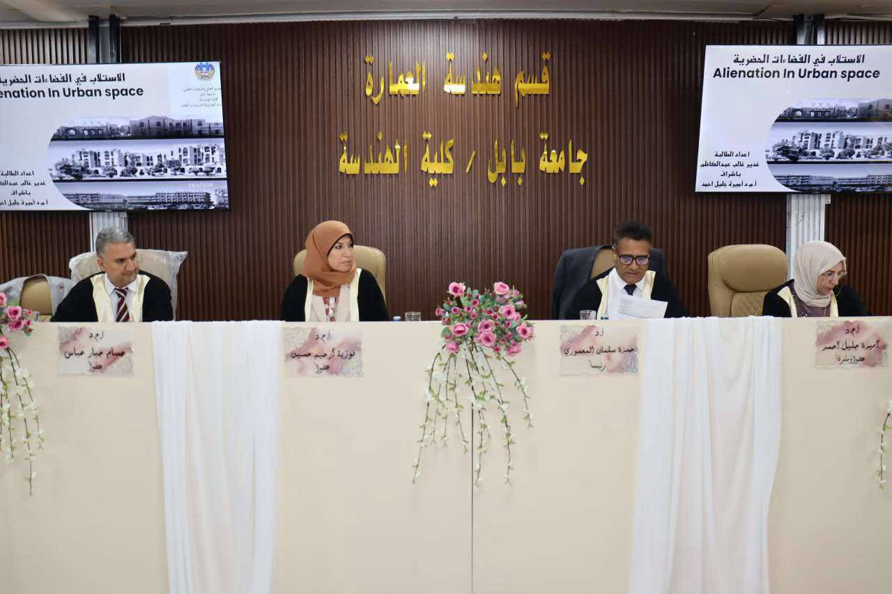 تدريسية من هندسة بغداد تشارك في مناقشة رسالة ماجستير حول الاستلاب في الفضاءات الحضرية بجامعة بابل
