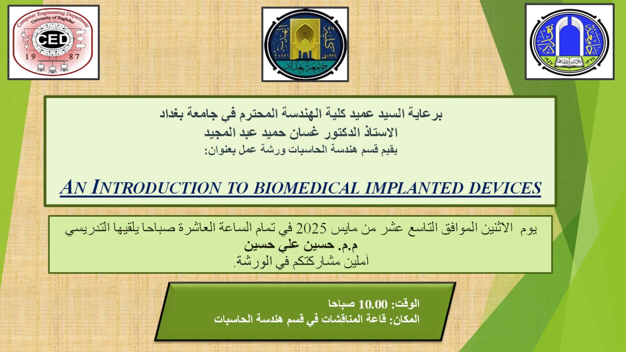 إعـــــلان: قسم هندسة الحاسبات في كلية الهندسة يعلن عن ورشة عمل بعنوان مقدمة للأجهزة الطبية المزروعة