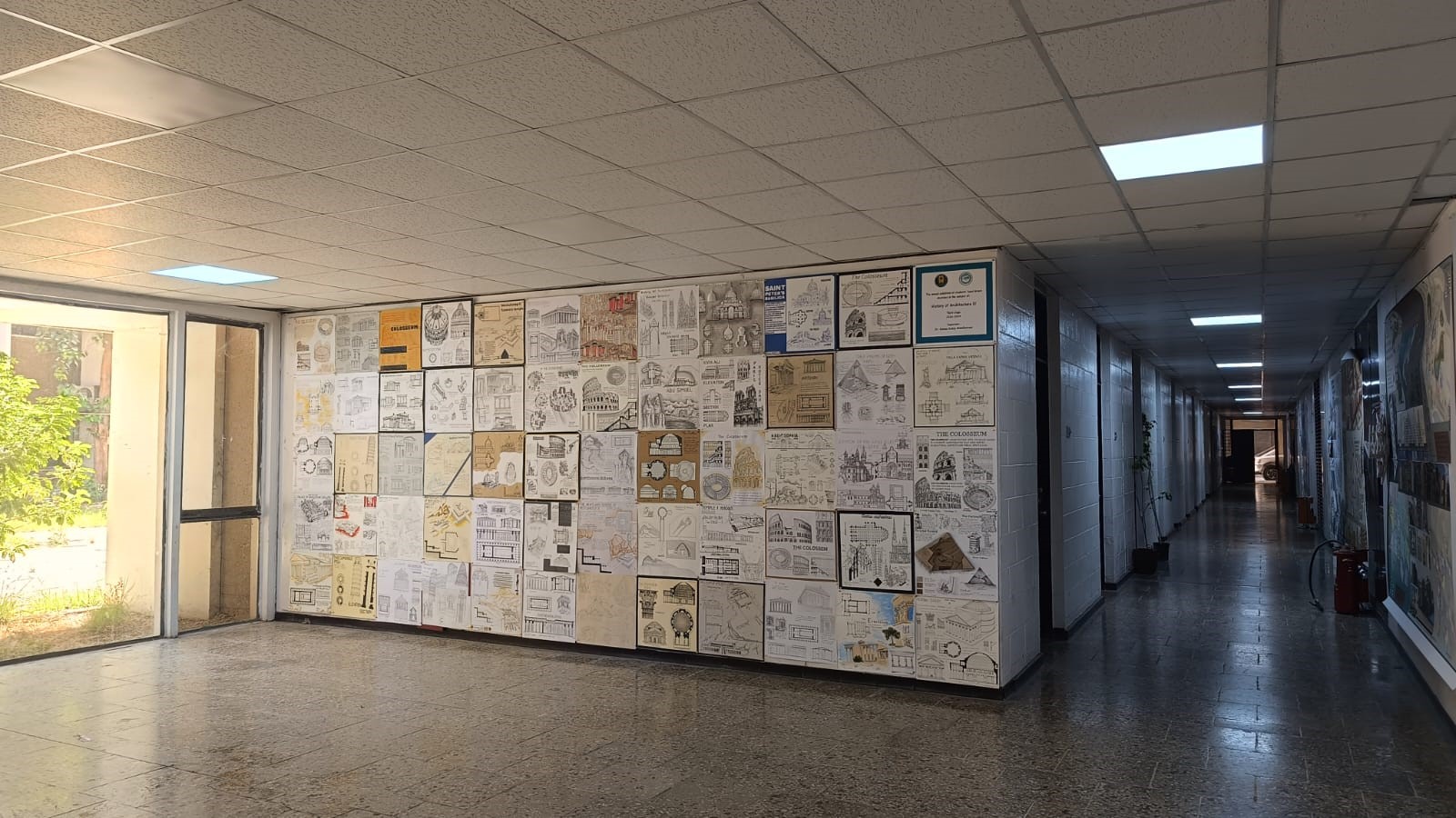 طلبة العمارة يوثقون روائع الطرز التاريخية في معرض رسومات يدوية