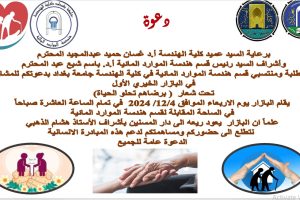 اعــــــلان: تحت شعار “برضاهم تحلو الحياة” هندسة بغداد تدعوكم لحضور البازار الخيري