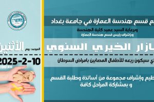 إعـــــلان : قسم هندسة العمارة في جامعة بغداد يقيم البازار الخيري السنوي لدعم الأطفال المصابين بالسرطان