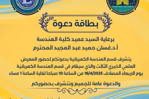 إعلان: قسم هندسة الكهرباء يدعوكم لحضور المعرض الخيري الثالث